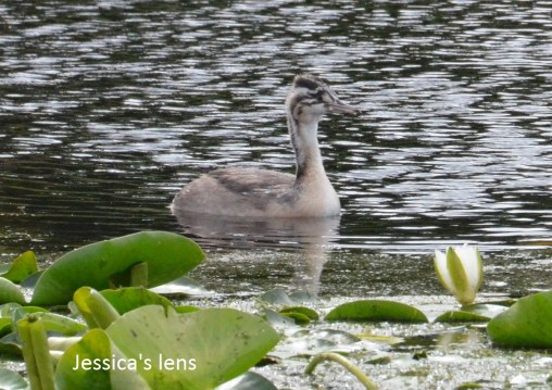 Great crested grebe and chick